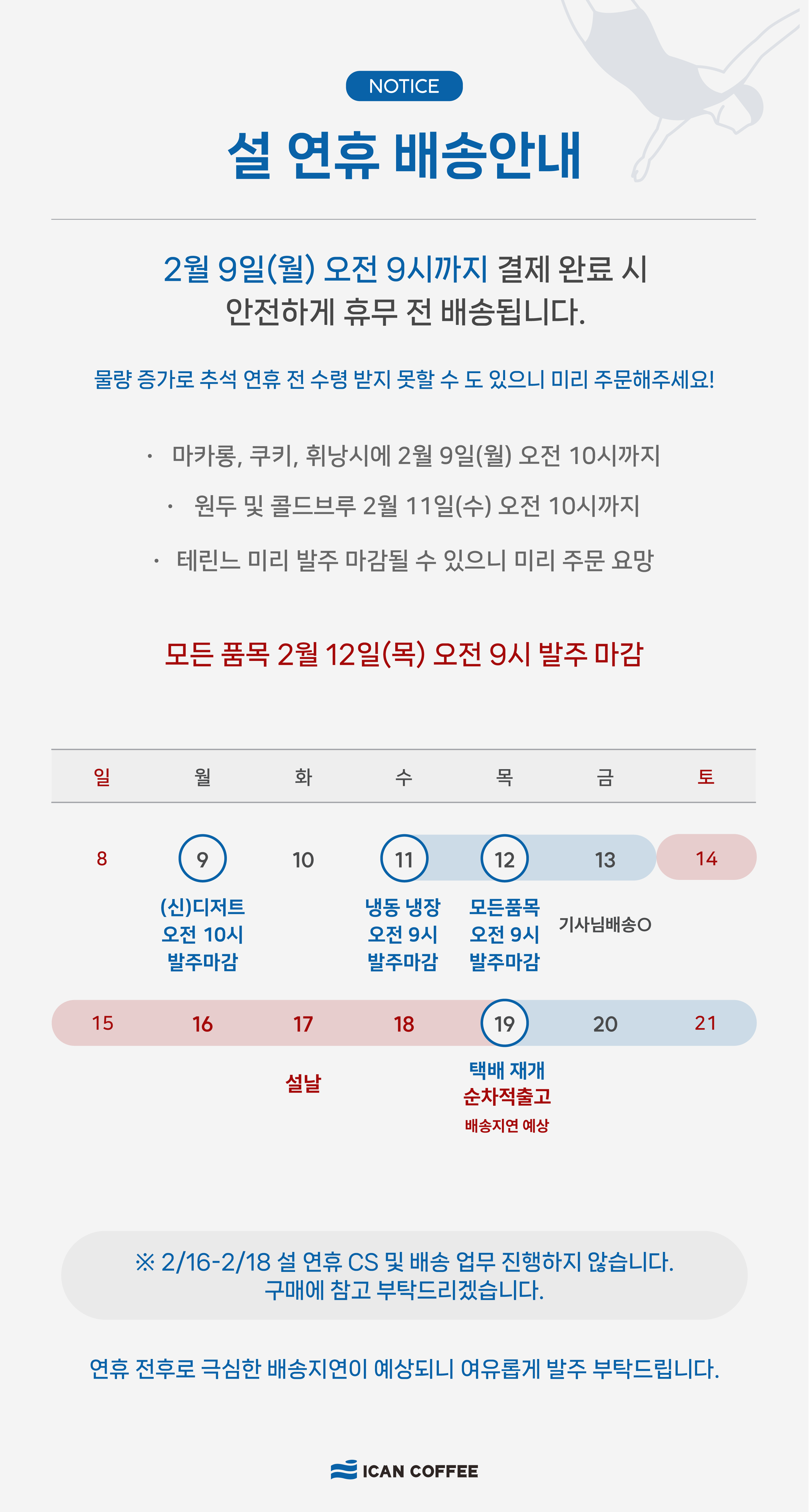 < 2024년 설날 연휴 배송 마감 일정 공지>